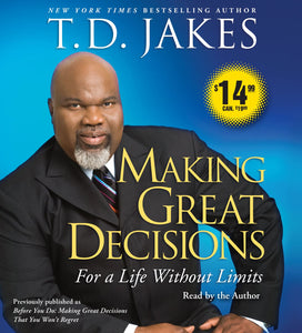 The star of BET’s Mind, Body & Soul, and featured guest speaker on Oprah’s Lifeclass, Potter’s House pastor, T.D. Jakes turns his attention to the topic of relationships, guiding you on the right track to making decisions you will benefit from for the rest of your life. In the vein of Joel Osteen’s Become a Better You and Dr. Phil’s Life Strategies, the New York Times bestselling Making Great Decisions gives you the psychological and practical tools you need to reflect, discern, and decide the next step toward strong relationships in your life. “Remember,” writes T.D. Jakes, “your tomorrow is no better than the decisions you make today.”